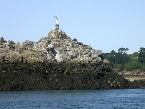 Le rocher de Bizeux et la statue de la vierge que les marins venaient saluer avant le départ vers les bancs de Terre Neuve.